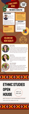 Message from the Chair, Dr. Angel Hinzo Joins the ETHN Department, Welcome New ETHN Lecturers, ETHN Community Spotlight: Ivonne Salas: Empowering Self & Community, Michaela Tyus: Making Space, Save the Date! Labovitz-Perez Lecture: Thursday, October 24, 2019